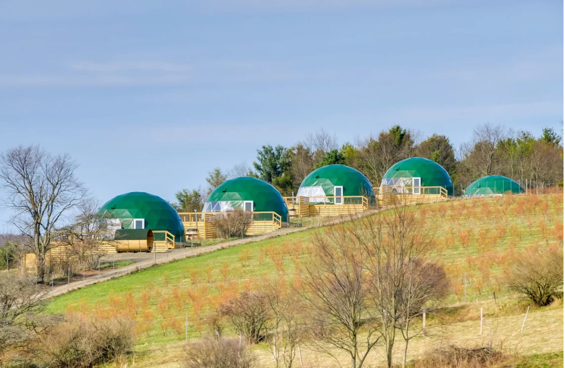 For those seeking warmth and wide horizons, Tirrito Farm in Arizona provides dome-style eco-lodging surrounded by gardens and dairy operations. Visitors can help with milking, honey extraction, or cheese making.